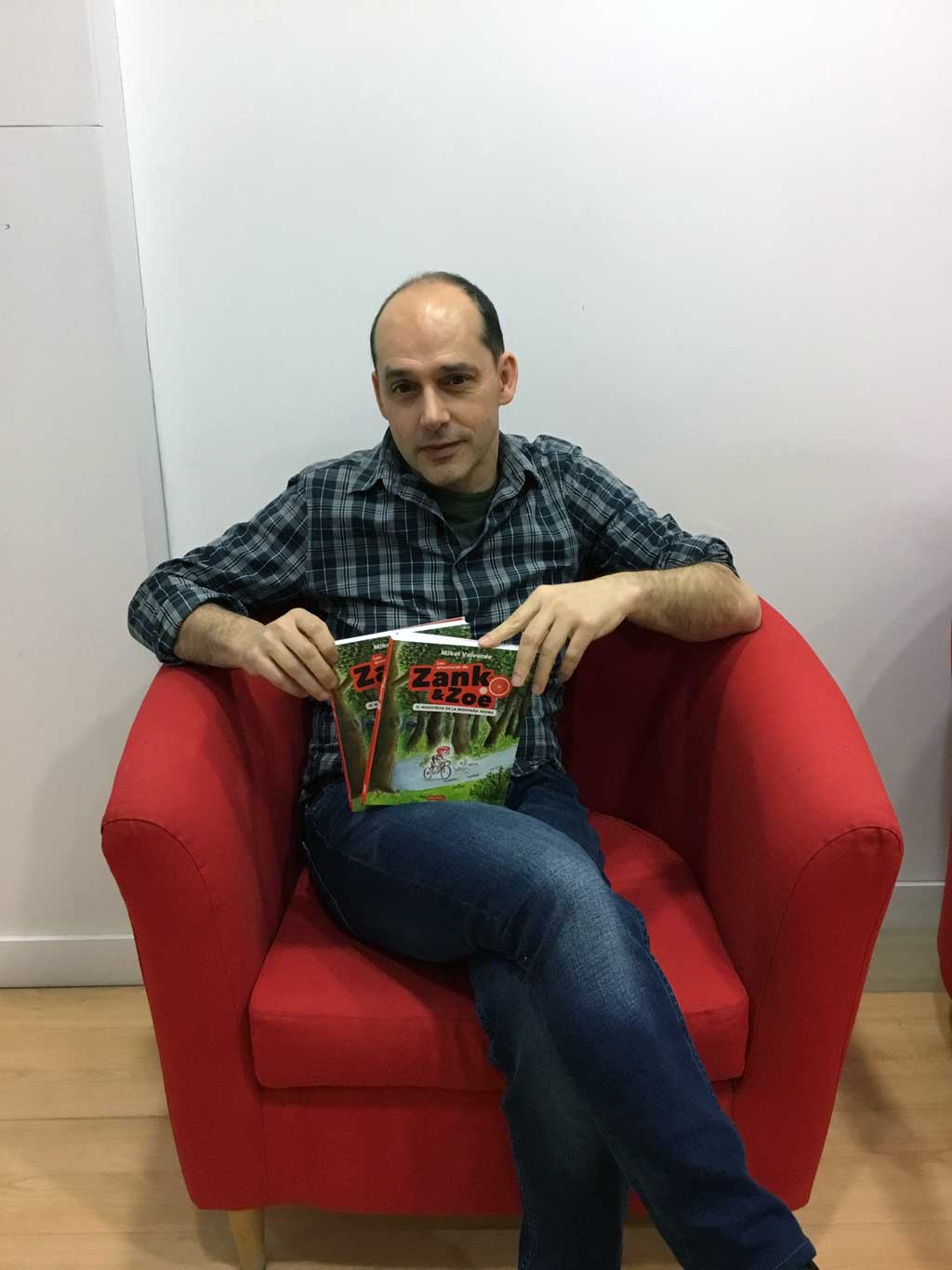Mikel Valverde (nacido y afincado en Vitoria) es el autor de «Zank y Zoe, el monstruo de la montaña negra« la primera de una serie de aventuras ilustradas que tiene y tendrá al ciclismo como protagonista. Está editada por Harper Kids.